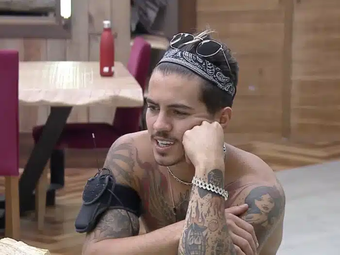 O jovem de 24 anos não aguenta mais a saudade da família e já está se comunicando com ela dias antes de sair do reality, acompanhado de Lipe os dois começam a puxar assunto falando sobre família e brincando o cantor diz “Bom dia, pai, mãe, irmã . Devem estar virados”, aproveitando a situação o modelo acaba entrando na brincadeira “Acabou de acordar. Tão cagando pra você , riu Lipe e continuou dizendo “Ah, tá na roça? Tem que votar? Nem viram o programa de ontem” .