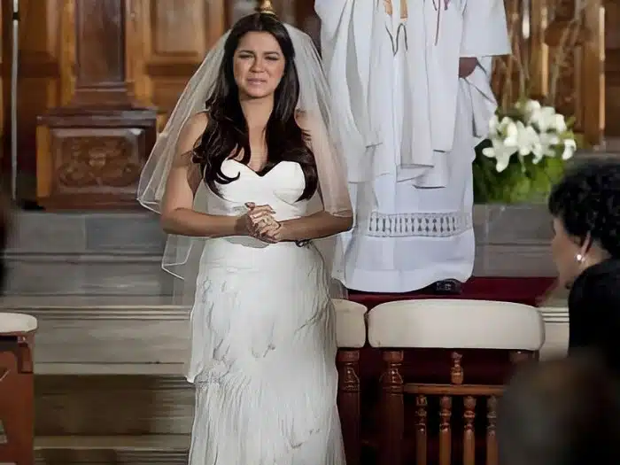 Uma longa pausa. Por um momento, Max parece que vai correr até o altar para reclamar sua mulher, mas Cruz coloca uma mão tranquilizadora e “caída no chão” em seu ombro e ele cede. Finalmente ouvimos a resposta de María: “Sim, aceito”.