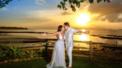 Em um cenário à beira-mar com uma decoração natural ,com muito verde e motivos indígenas marajoaras é assim que a cantora Gretchen...