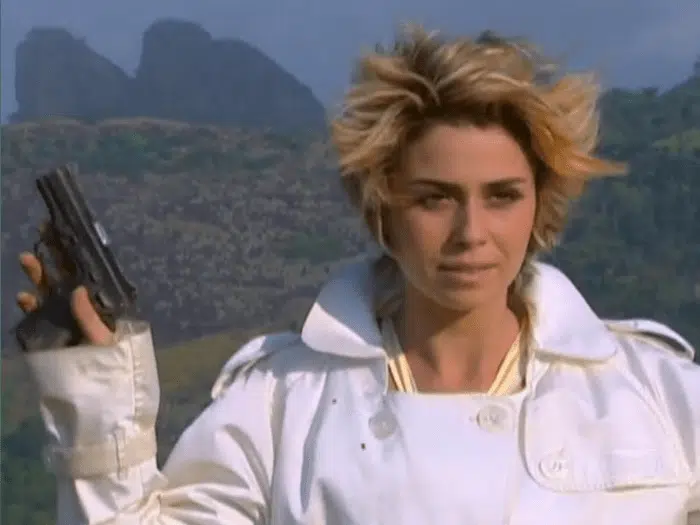 Tony entrega a arma para Bárbara e manda a esposa atirar contra Paco, decidida a louca não segue a ordem do marido dispara contra ele em seguida se vira para o mocinho e se declara para ele, dizendo, “EU TE AMO” por repetidas vezes ao mesmo tempo afastando-se para trás, e se joga do Precipício.