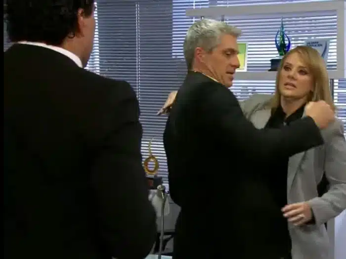 Vitória diz que tem certeza de que não haverá problemas com o namorado, ela está feliz com a colaboração e agradece a ele. Carlos comenta que está muito feliz por trabalhar com as Irmãs Balvanera! Ela também conta a ele sobre sua pequena conversa com Adriana (Natalia Esperón) e aconselhou a irmã a se arriscar com ele. Os dois dão um belo abraço, mas infelizmente, Jose Ângelo escolhe este momento para entrar no escritório. Ele é comido vivo pelo ciúme, porque eles estavam se abraçando, e pega uma pilha de cópias e joga nos pés de Carlos e pergunta o que está acontecendo.