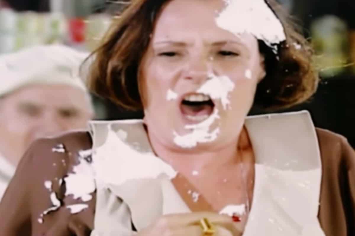 “A senhora nunca me cumprimentou”, reclamará um deles. “A senhora demitiu a minha irmã quando ela estava doente”, relembrará outro. Uma guerra de tortas intensa começará e vários doces serão jogados contra Jezebel, que ficará toda suja e será duramente humilhada.