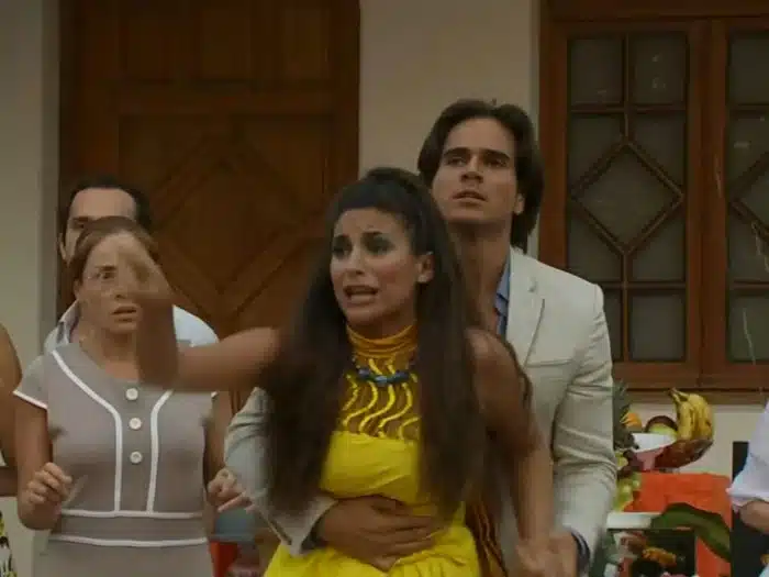 Alguns momentos depois, o casal feliz aparece na festa. Todo mundo dá uma boa olhada e dá uma gargalhada. Maricruz morde as unhas nervosamente enquanto Lúcia graciosamente faz seu caminho e então começa a apresentá-la aos convidados.