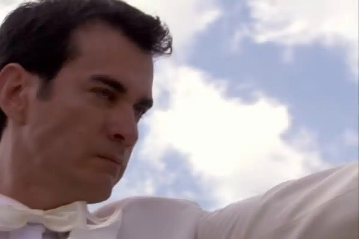 Gael, em desespero, persegue-os proferindo ameaças graves. A cena se desenrola como uma corrida contra o tempo, com o padre Lupe (René Casados) observando a situação com preocupação, fazendo uma referência simbólica à complexidade dos laços familiares entre Gael e Damião.