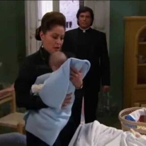 José Aguiar chegará ao quarto da patroa e gentilmente a deita na cama. Ele acaricia o cabelo dela, muito suavemente, e encosta o rosto no dela. José Aguiar beija sua bochecha e dá beijos de borboleta basicamente em todo o rosto e há outro beijo bem perto de seus lábios. Ele está prestes a ir, mas decide tirar os sapatos dela, e então descobre que os pés dela estão frios e ele então olha em volta e vê um manto branco em sua mesa de cabeceira, ele o pega para cobri-la, mas uma caixa de música se transforma em barulho estrondoso no silêncio ao cair no chão. Isso acorda a protagonista de Amores Verdadeiros.