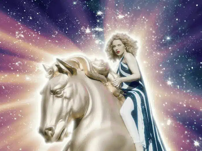 Uma das grandes divas do pop lança um novo vídeo onde explora as referências visuais da era setentista que inspira a nova fase do seu trabalho. A australiana Kylie Minogue divulga o registro para “Say Something”, primeiro single de seu novo álbum, “Disco”. Dirigido por Sophie Muller (Beyoncé, Björk, Radiohead, Coldplay), o vídeo é uma viagem intergalática com retrô-futurista com a artista cavalgando um cavalo dourado. A faixa está disponível em todos os serviços de música digital via BMG.
