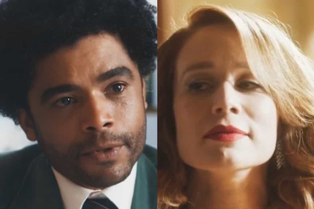 Cidália (Cássia Kis) ficará pasma ao descobrir que Guerra (Humberto Martins) deu de bandeja para Ari (Chay Suede) as ações da sua construtora em Travessia...