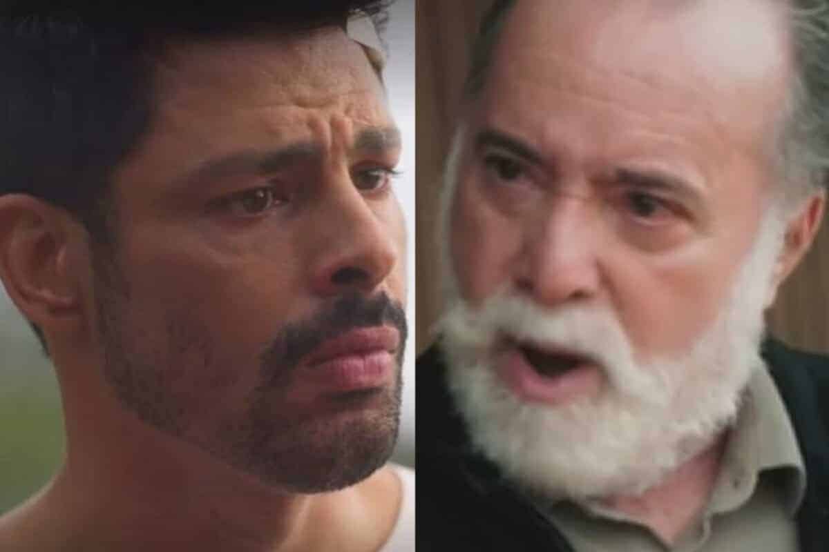 Irritado com a conduta do primogênito, que apunhalou sua família, o ricaço começará uma discussão acalorada que acabará em agressão. “Você cravou uma faca nas minhas costas. Traidor, sim! Você, que é meu filho, não podia pagar a parcela da dívida daquela mulher”, soltará o vilão.