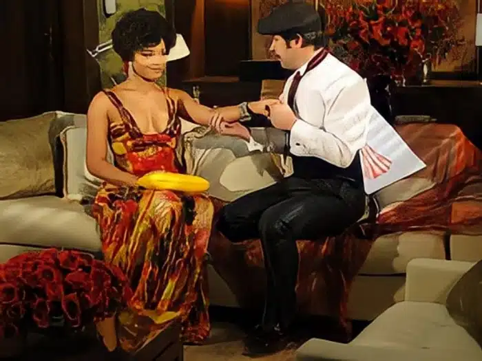 Ariclenes (Murilo Benício) e Chico (Rodrigo Lopez) esperavam receber uma senhora de idade, mas ficarão chocados com a beleza e o charme de Clotilde, “Señora Benetazi, que sorpresa! Yo imaginaba una mujer más vieja… Encantado”, comentará Ari ao incorporar o espanhol. Victor Valentim pedirá para Chico deixá-lo a sós com a moça e começará a jogar todo seu encanto e seu charme para ela, no momento em que ele acabar mostrando alguns croquis a morena esperará a hora certa para dar o bote, ele se aproximará com uma fita métrica para tirar a medida dela. “Que bello cuerpo, señora. Usted evoca una canción brasileña, “Da Cor do Pecado”, conoce? Mi portugues és muy precário, pero la letra dice “Este corpo moreno, cheiroso e gostoso que usted tiem…” cantará ele a seduzindo.