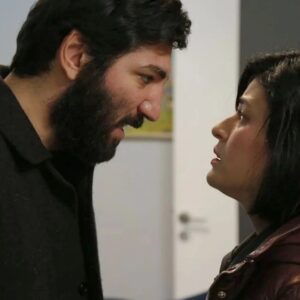 Enquanto conversa com Viviane, Leonardo se interessa por um porta-retratos e tenta examiná-lo melhor. Um descuido faz com que ele deixe a foto e a xícara caírem. Ambos se abaixam para recolher os objetos e, nesse movimento espontâneo, o clima muda.