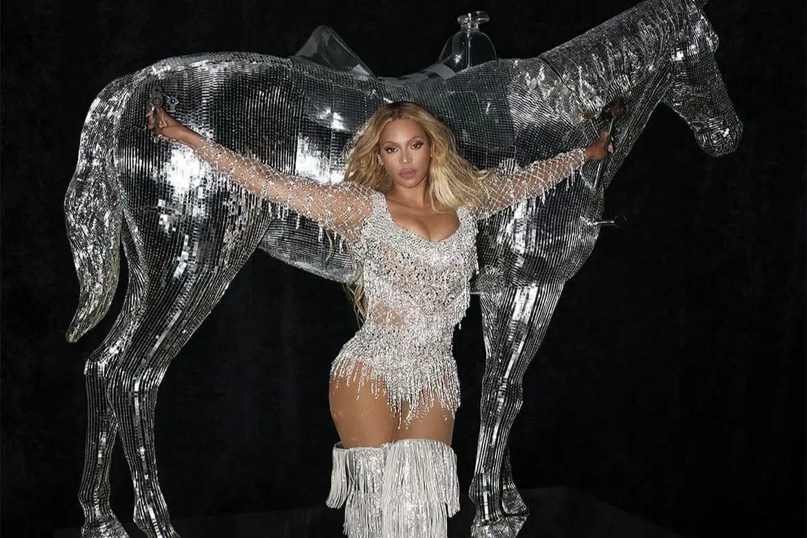 A estrela do pop Beyoncé usou um look exclusivo da PatBo, um body com franjas e bordados prateados, cor que se tornou...